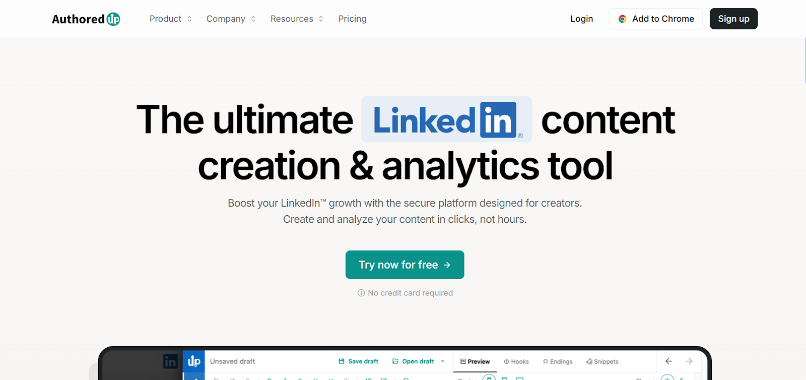 AuthoredUp is a secure, all-in-one LinkedIn content creation and analytics platform. It combines a powerful editor with formatting tools, optimized hooks, and readability checks to help you craft standout posts effortlessly.