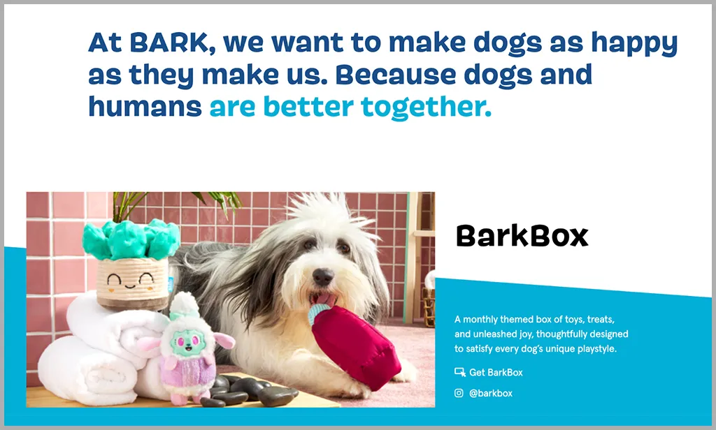BarkBox is known for its cheeky, witty voice, like your dog wrote the caption.